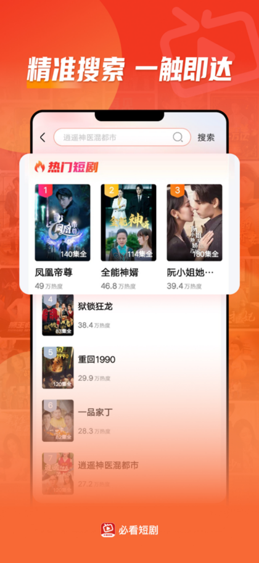 必看短剧APP作为汇聚全球流行短剧的免费观看平台,覆盖都市热血、穿越重生等多类型影片,可观看热门优质及其他平台付费短剧,资源免费且种类丰富、实时更新;具备短视频快捷创作(剪辑、合成等工具助力产出高品质内容)、个性推荐(依用户观看习惯推适配内容)功能,播放体验优,依网络自动切换清晰度,支持在线与本地缓存,手机随时随地看;设有点赞、评论等社交互动及一键分享功能,内容覆盖美食、社会等多领域并适配音乐配乐,无广告弹窗,竖屏沉浸式观看流畅,持续推送热门实时短剧,为用户带来看剧、创作、互动一体的多元体验。